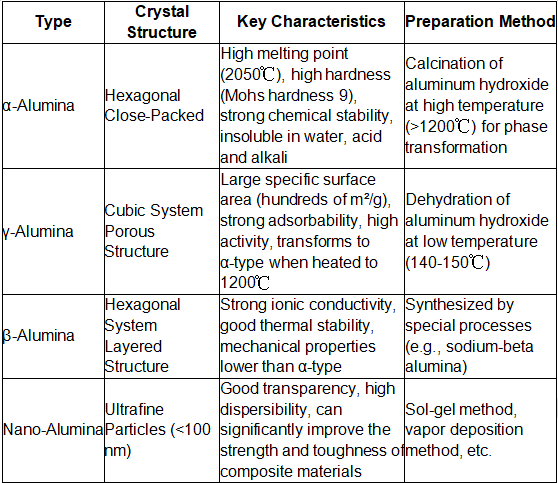 Die Kernklassifizierung von Aluminiumoxidpulver basiert auf seiner Kristallstruktur und seinem Herstellungsverfahren. Gängige Typen und ihre Eigenschaften sind wie folgt: